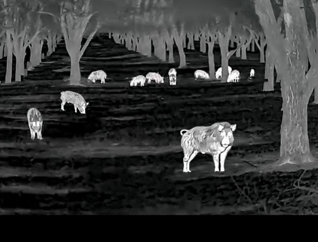 Hogs show up as bright white blobs against cooler backgrounds. You can usually make out basic body shape and movement patterns at identification range. What you can't see: fine details like exact shot placement or whether that hog has good tusks. You're shooting center mass on body heat, not picking specific aiming points.