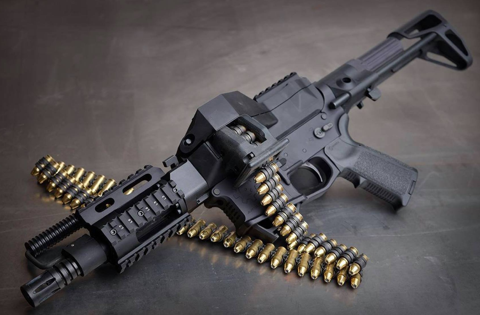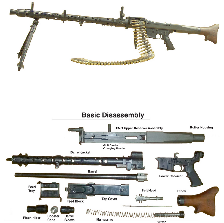 BRP's XMG system provides belt-fed conversion capability for multiple calibers and platforms. The system is designed as a modular approach to belt-fed shooting, allowing shooters to configure the system for different cartridges and applications. The best part about this system, is that it let's you mount the upper components of a German WWII MG-34 machine gun on top of an AR15 lower receiver!